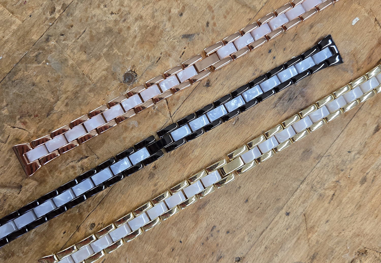 Ein trendiges Uhrenarmband im Stil von Michael Kors und DKNY, hergestellt aus rostfreiem Stahl kombiniert mit farbigem Resin. Geben Sie Ihrer Uhr den letzten Schliff mit diesem Uhrenarmband aus unserer Private-Label-Kollektion.