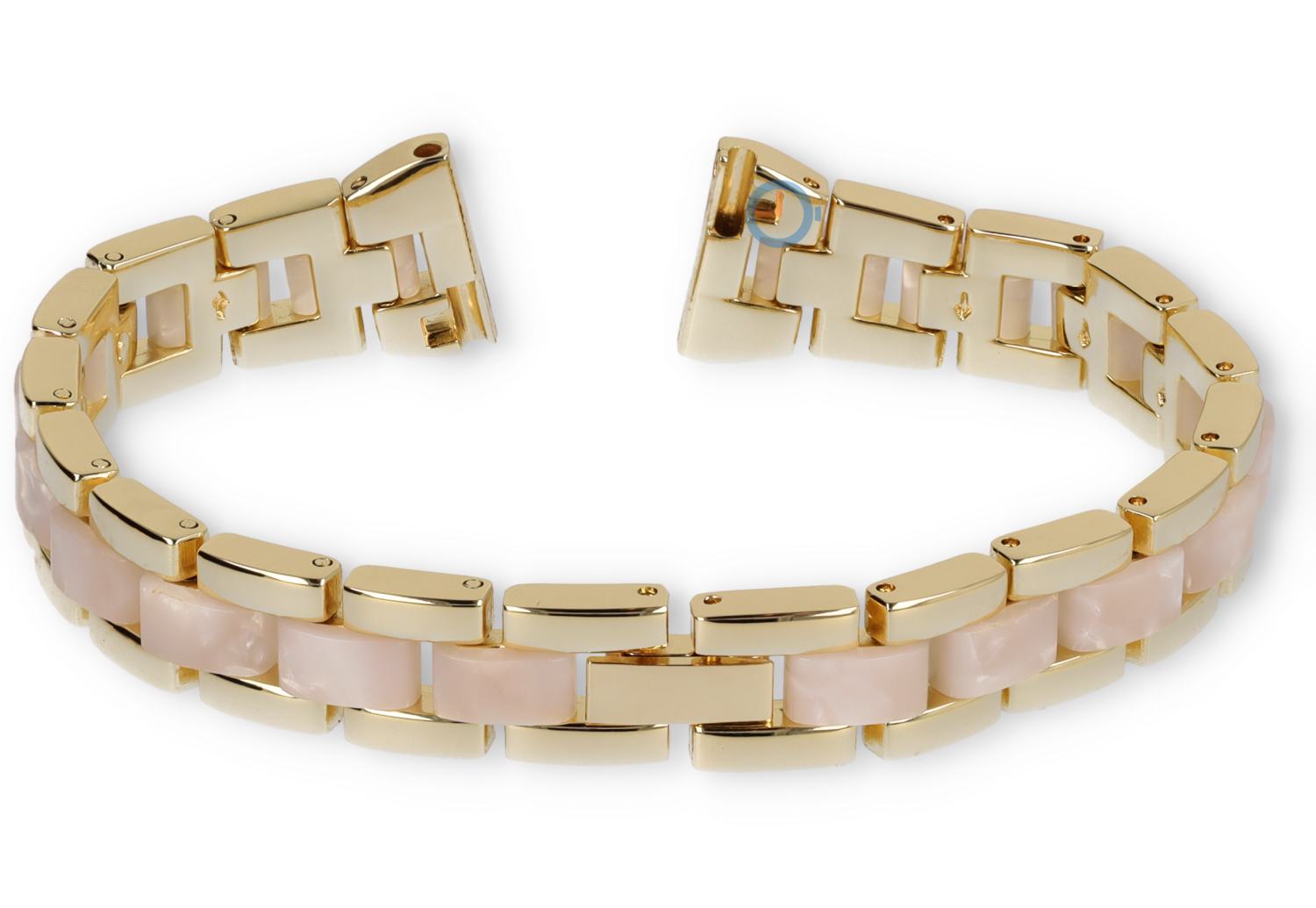 Ein trendiges Uhrenarmband im Stil von Michael Kors und DKNY, hergestellt aus rostfreiem Stahl kombiniert mit farbigem Resin. Geben Sie Ihrer Uhr den letzten Schliff mit diesem Uhrenarmband aus unserer Private-Label-Kollektion.