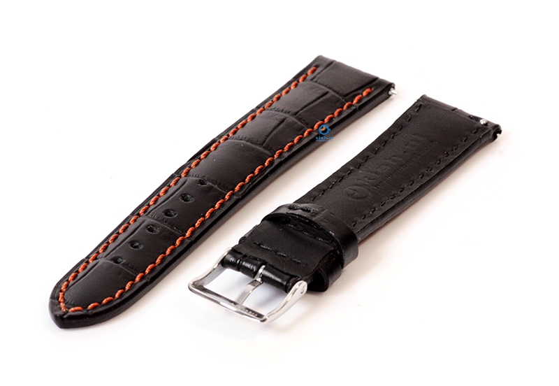 18mm Lederarmband mit Krokoprägung - schwarz mit orange. Das Uhrenarmband ist aus hochwertigem Leder gefertigt und perfekt verarbeitet.