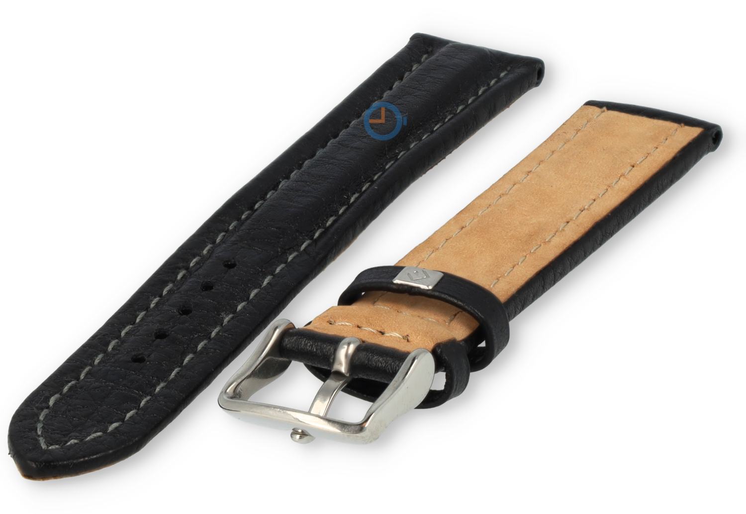 18mm wattiertes Uhrenarmband von schwarz Leder. Stevige Uhrenarmband mit opvulling. schwarz Leder mit weißte stiksels en een stevige, stalen gesp.