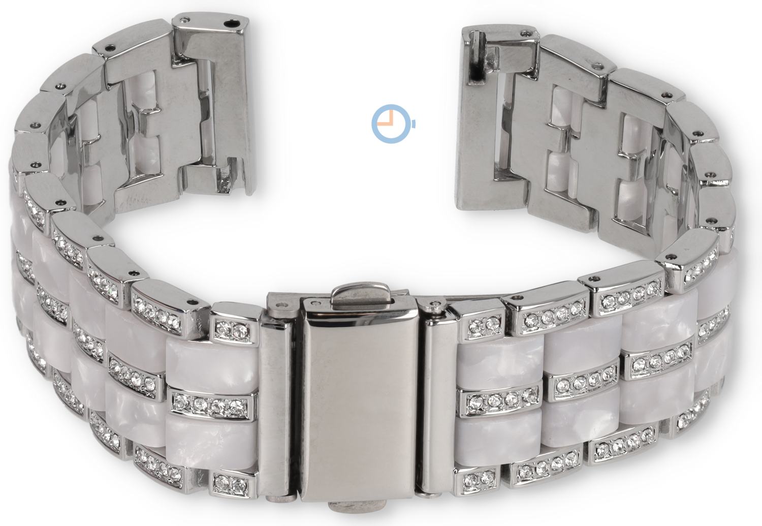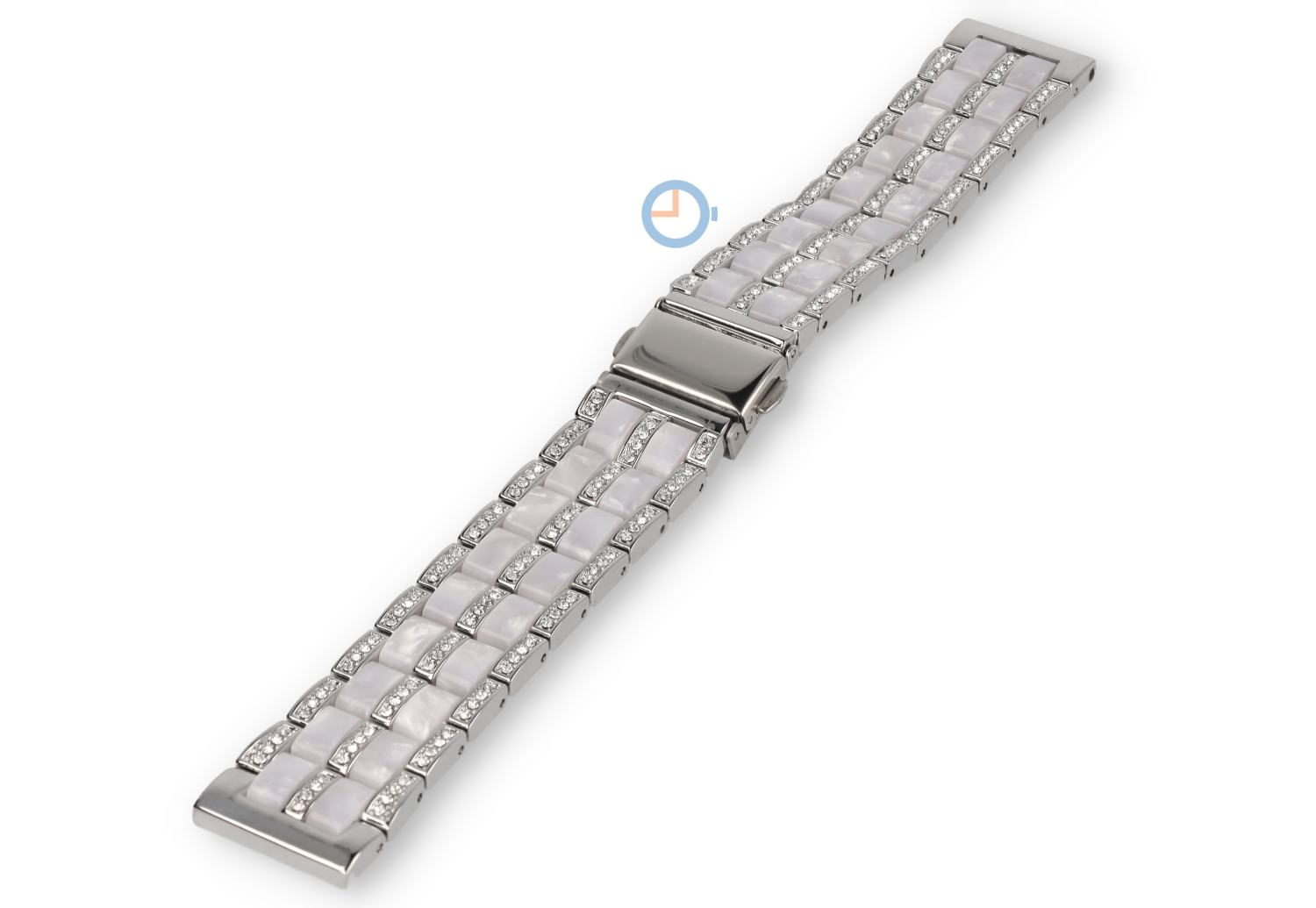 D007 - Elegantes und verfeinertes Uhrenarmband mit luxuriösen Details - Rostfreier Stahl mit Marmor-Resin und Steinchen - 20mm - silberfarbiges mit wit - Länge: 175mm - Die Bandbreite am Anstoß beträgt 20 mm und Sie können das Armband mit Schnellwechselstiften befestigen. Die Länge ist maximal 175mm (exklusive Uhrengehäuse) und lässt sich mit bis zu 6 Gliedern einfach kürzen. Der Klappverschluss ist sicher und lässt sich mit 2 Druckknöpfen öffnen.