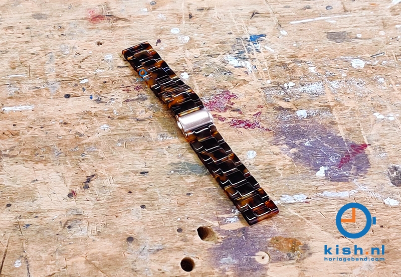 20mm resin Uhrenarmband - turtle braun. Uhrenarmband aus Harz. Vervollständigen Sie Ihr Outfit mit diesem hochwertigen Kunststoffband mit (Druck - )Faltschließe. Die Glieder dieses Armbands sind abnehmbar, so dass das Armband individuell angepasst werden kann und super passt.