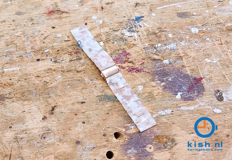 20mm resin Uhrenarmband - turtle lachsrosa/weiß. Uhrenarmband aus Harz. Vervollständigen Sie Ihr Outfit mit diesem hochwertigen Kunststoffband mit (Druck - )Faltschließe. Die Glieder dieses Armbands sind abnehmbar, so dass das Armband individuell angepasst werden kann und super passt.