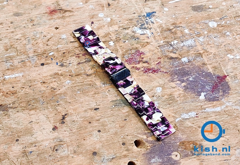 20mm resin Uhrenarmband - turtle lila/weiß. Uhrenarmband aus Harz. Vervollständigen Sie Ihr Outfit mit diesem hochwertigen Kunststoffband mit (Druck - )Faltschließe. Die Glieder dieses Armbands sind abnehmbar, so dass das Armband individuell angepasst werden kann und super passt.