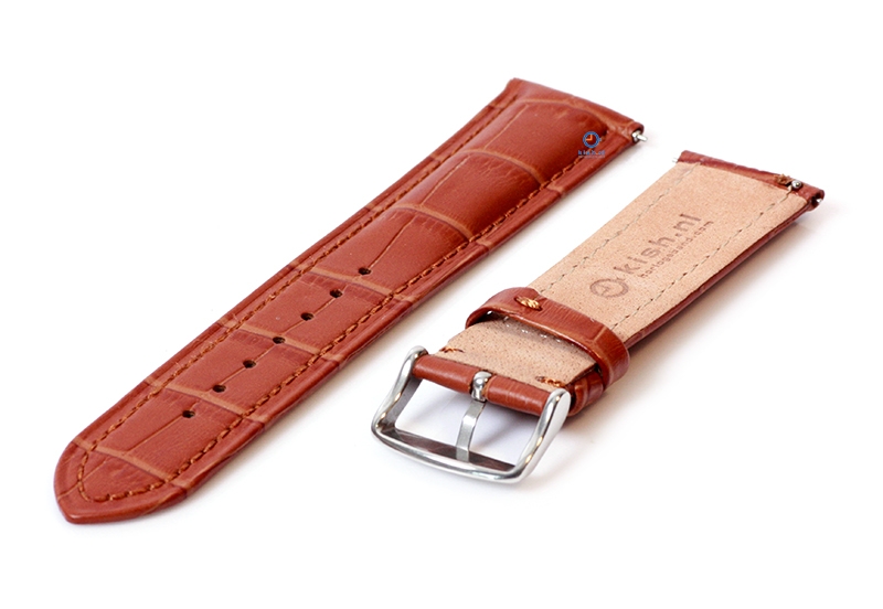 22mm Lederarmband mit Krokoprägung - hellbraun