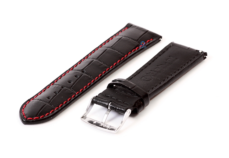 22mm Lederarmband mit Krokoprägung - schwarz mit rot