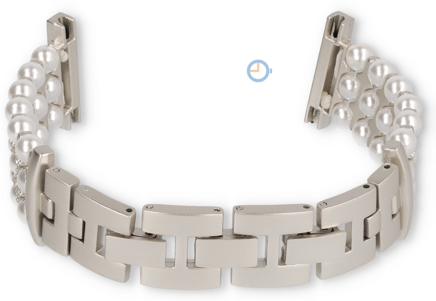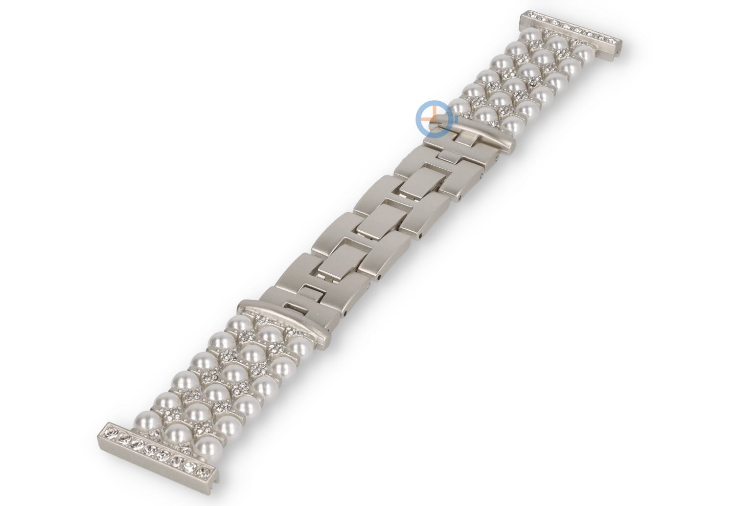 22mm Stahl Uhrenarmband mit eleganten Details. Das trendige Band hat die Optik eines modernen Armbands und besteht aus Gliedern mit Perlen und kleinen Steinen.