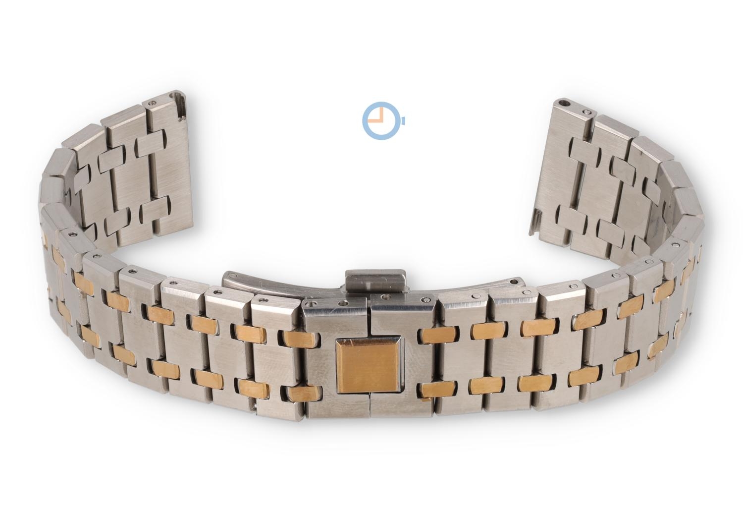 22mm Stahl Uhrenarmband silber/gold - Audemars Piguet look Sind Sie auf der Suche nach die luxeriöse Ausstrahlung von einem Audermans Piquet Uhrenarmband, ohne die Kosten eines Originals? Entdecken Sie unser exklusives Look-a-Like Uhrenarmband aus Stahl. Entworfen mit ein Auge für das Detail, liefert dieses 22mm breite Uhrenarmband ein einzigartiges Aussehen, wie die iconische Marke. Und die Qualität? Garantiert genau so gut!