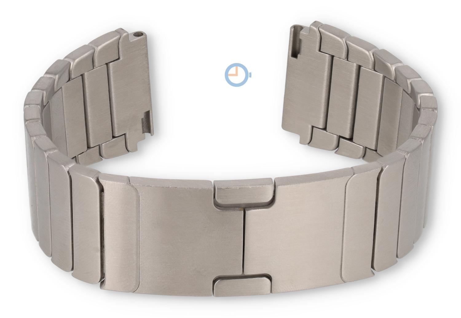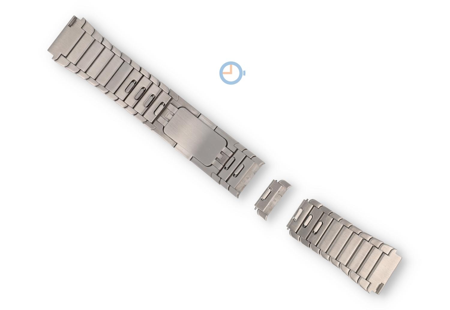 22mm Titan Uhrenarmband silber. Das Titan ist viele Male stärker als ein Standard Stahl Uhrenarmband und zudem auch viel leichter. Das stilvolle Uhrenarmband ist allergiefrei und jetzt noch einfacher zu kürzen. Ein paar Glieder haben einen kleinen Hebel, wodurch man es ganz einfach auf klicken können.