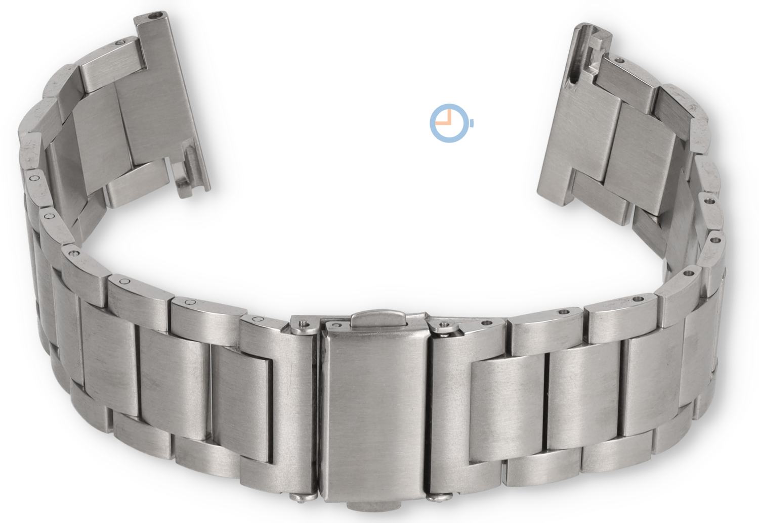 Mit einer Länge von 180mm (ohne Uhrengehäuse) und 8 entfernbaren Gliedern ist das Band fast auf jede Größe einzustellen. Die matter Verarbeitung verleihen dem Band eine ruhige und moderne Ausstrahlung. Dank der Faltschließe mit Druckknöpfen sitzt das Band stabil und komfortabel um das Handgelenk.