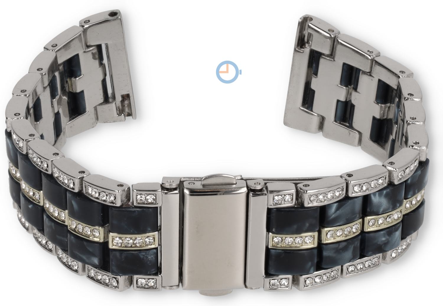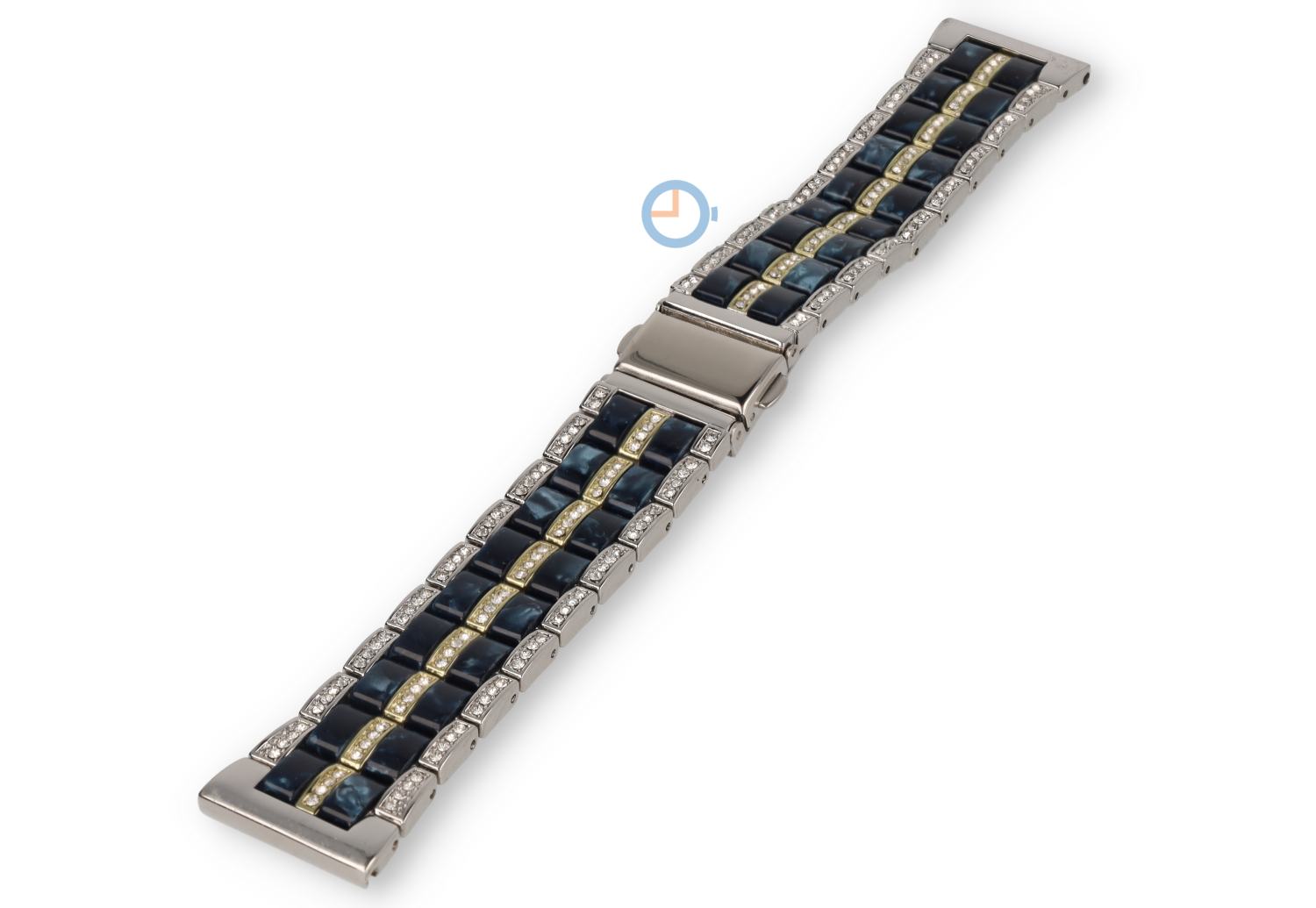 D007 - Elegantes und verfeinertes Uhrenarmband mit luxuriösen Details - Rostfreier Stahl mit Marmor-Resin und Steinchen - 22mm - silberfarbiges mit blau - Länge: 175mm - Die Bandbreite am Anstoß beträgt 22mm und Sie können das Armband mit Schnellwechselstiften befestigen. Die Länge ist maximal 175mm (exklusive Uhrengehäuse) und lässt sich mit bis zu 6 Gliedern einfach kürzen. Der Klappverschluss ist sicher und lässt sich mit 2 Druckknöpfen öffnen.