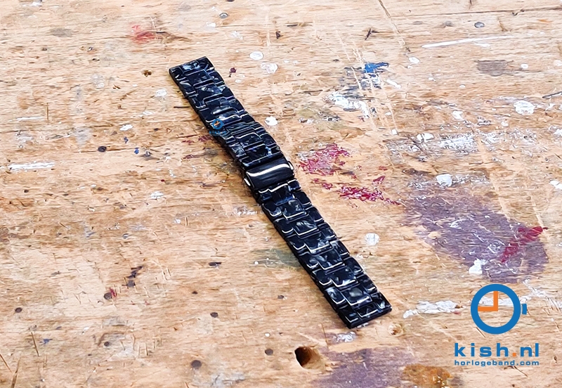 22mm resin Uhrenarmband - Granit schwarz/grau. Uhrenarmband aus Harz. Vervollständigen Sie Ihr Outfit mit diesem hochwertigen Kunststoffband mit (Druck - )Faltschließe. Die Glieder dieses Armbands sind abnehmbar, so dass das Armband individuell angepasst werden kann und super passt.
