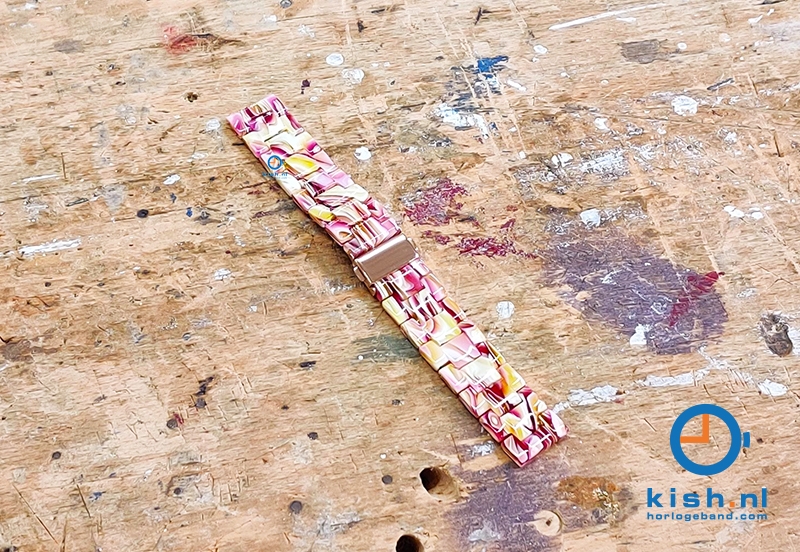 22mm resin Uhrenarmband - Zuckerstange pink. Uhrenarmband aus Harz. Vervollständigen Sie Ihr Outfit mit diesem hochwertigen Kunststoffband mit (Druck - )Faltschließe. Die Glieder dieses Armbands sind abnehmbar, so dass das Armband individuell angepasst werden kann und super passt.