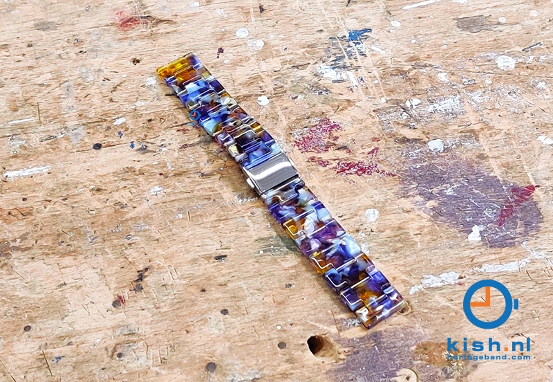22mm resin Uhrenarmband - turtle lila/gelb. Uhrenarmband aus Harz. Vervollständigen Sie Ihr Outfit mit diesem hochwertigen Kunststoffband mit (Druck - )Faltschließe. Die Glieder dieses Armbands sind abnehmbar, so dass das Armband individuell angepasst werden kann und super passt.