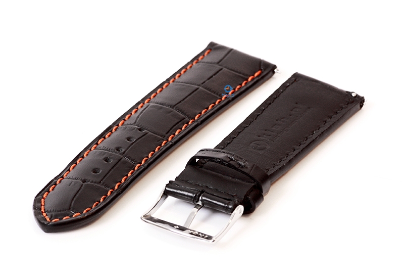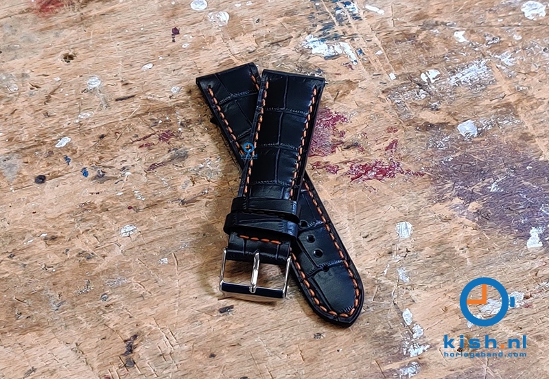 24mm Lederarmband mit Krokoprägung - schwarz mit orange