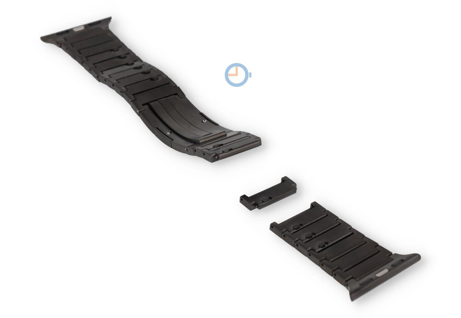 Titan Apple Watch Armband für die 38/40/41/42mm - grau. Verleihen Sie Ihre Apple Watch einen stilvollen Look, mit diesem Titan Uhrenarmband. Das stilvolle Uhrenarmband ist Nickelfrei und jetzt noch einfacher zu kürzen. Ein paar Glieder sind versehen mit dem Quick Switch System, wodurch man die Glieder einfach herunter klicken können.