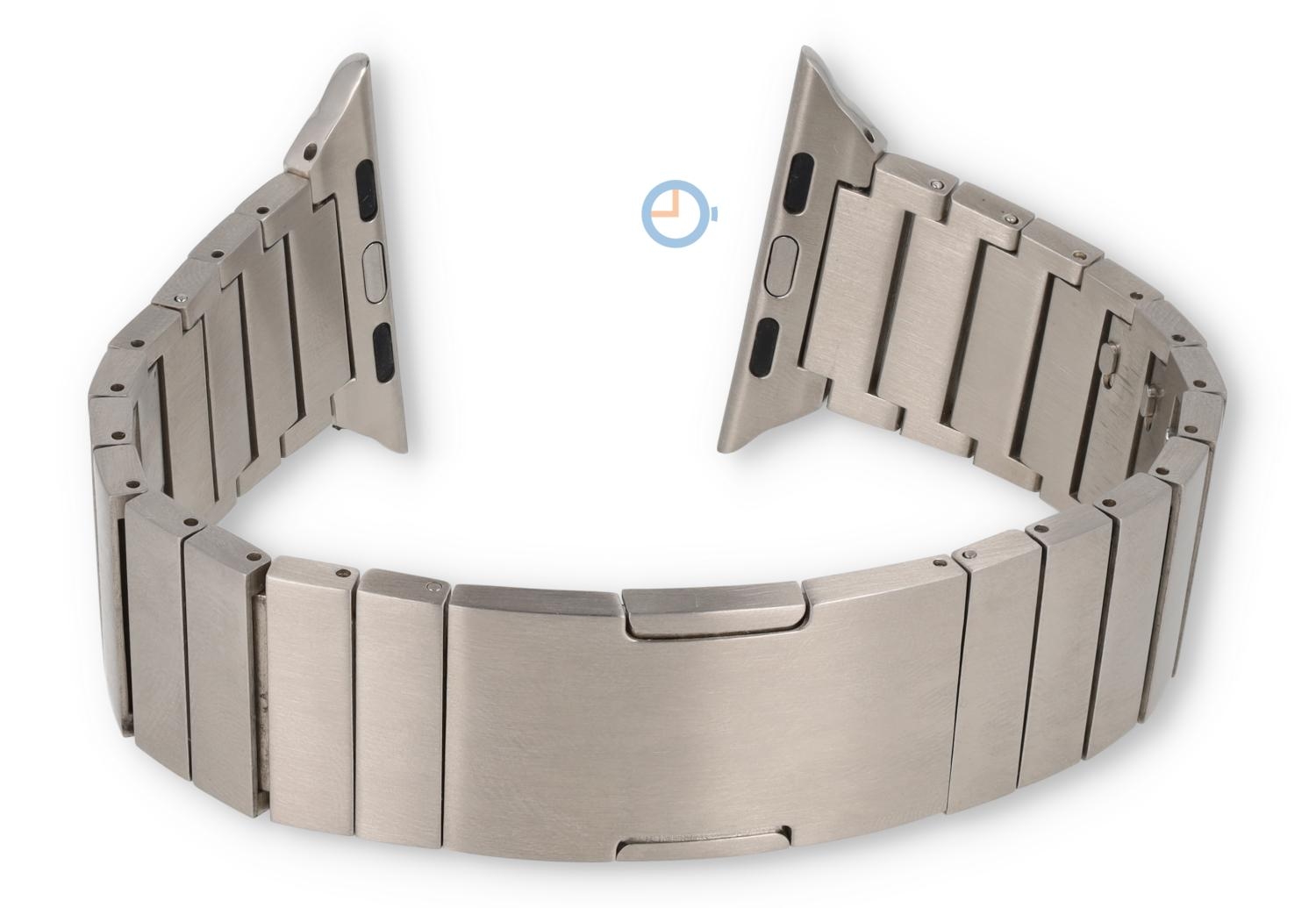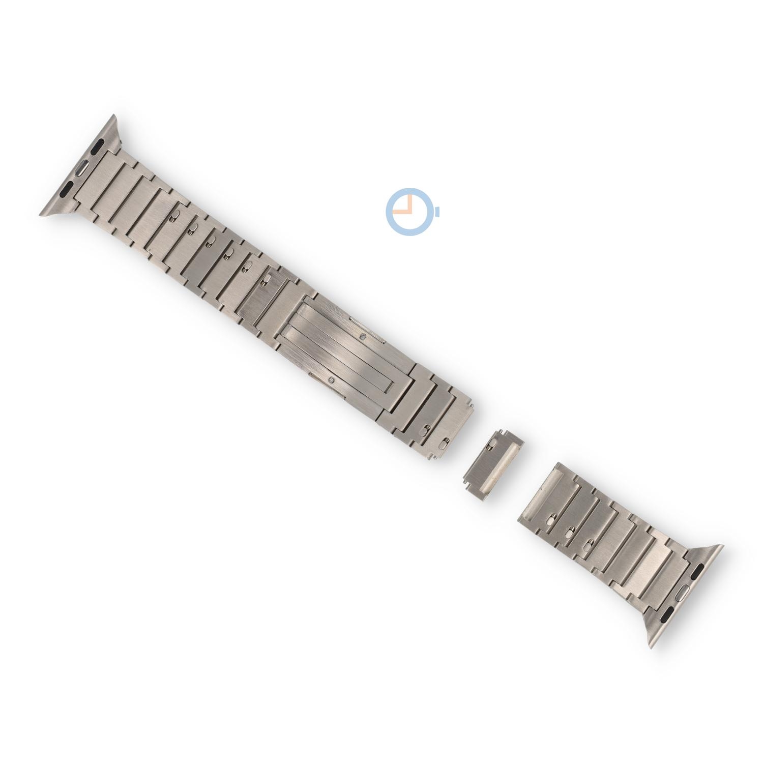 Titan Apple Watch Armband für die 42/44/45/49mm - silber. Verleihen Sie Ihre Apple Watch einen stilvollen Look, mit diesem Titan Uhrenarmband. Das stilvolle Uhrenarmband ist Nickelfrei und jetzt noch einfacher zu kürzen. Ein paar Glieder sind versehen mit dem Quick Switch System, wodurch man die Glieder einfach herunter klicken können.