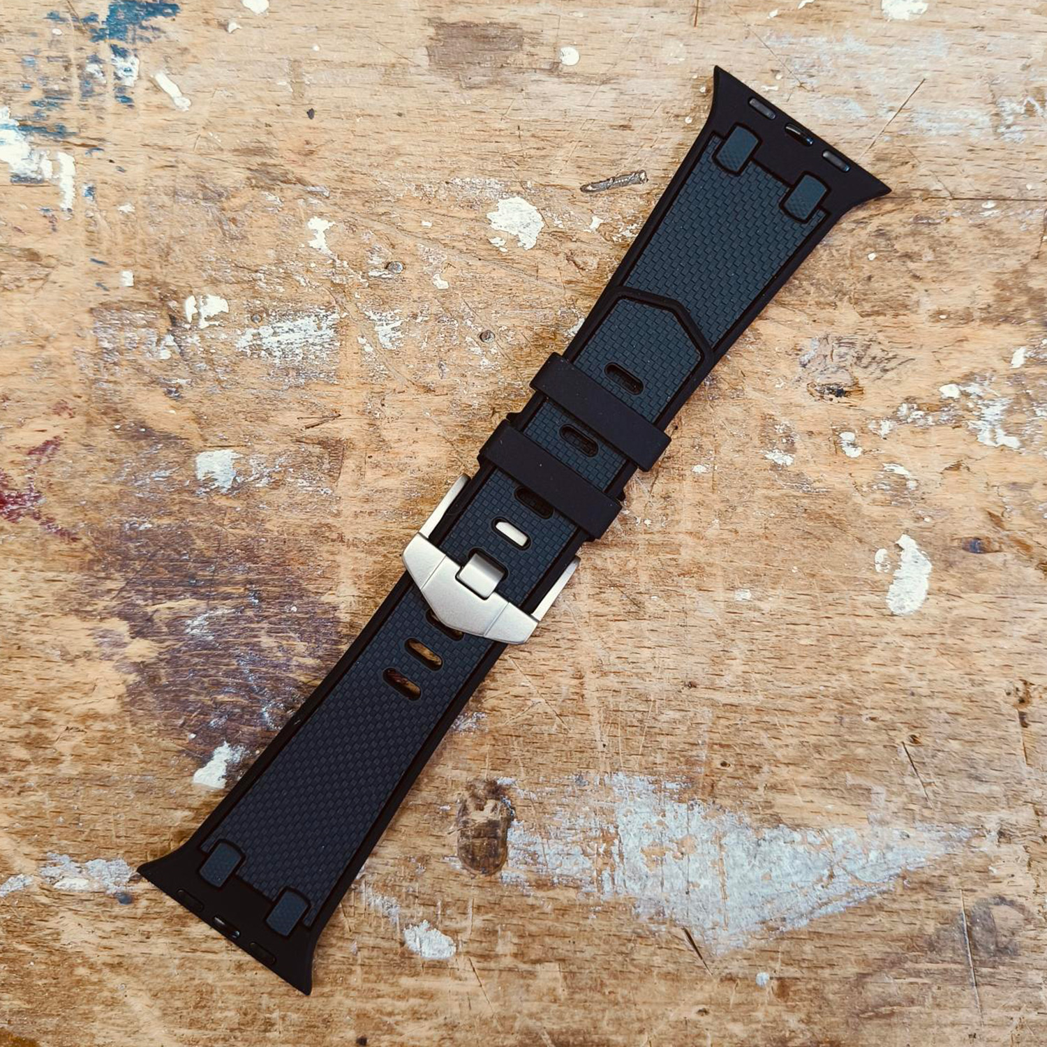 Apple Watch Uhrenarmband in dem Stil von Audemars Piguet - Apple Größe: 45mm - Black Grey. Entdecke heute noch dieses fantastische Silikon Uhrenarmband in Audemars Piguet Stil, speziell für Ihre Apple Watch. Kreieren Sie diesen coolen Look und wähle aus unetschiedliche Farben. Alle Vorteile von diesem Uhrenarmband aufgezählt: bezahlbar, Verschleißfest, Farbenfest, beständig gegen hohe Temperaturen, wasserabweisend, staubproof, geruchfrei, anti-allergisch und eine lange Lebensdauer.