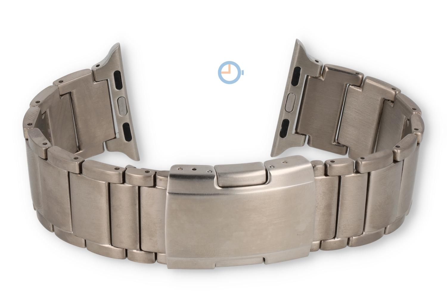 Titan Apple Watch Armband für die 38/40/41/42mm Apple watch - silber. Verleihen Sie Ihre Apple Watch einen stilvollen Look, mit diesem Titan Uhrenarmband. Das Uhrenarmband ist allergiefrei und ist einfach zu kürzen mit einem Stiftaustreiber.