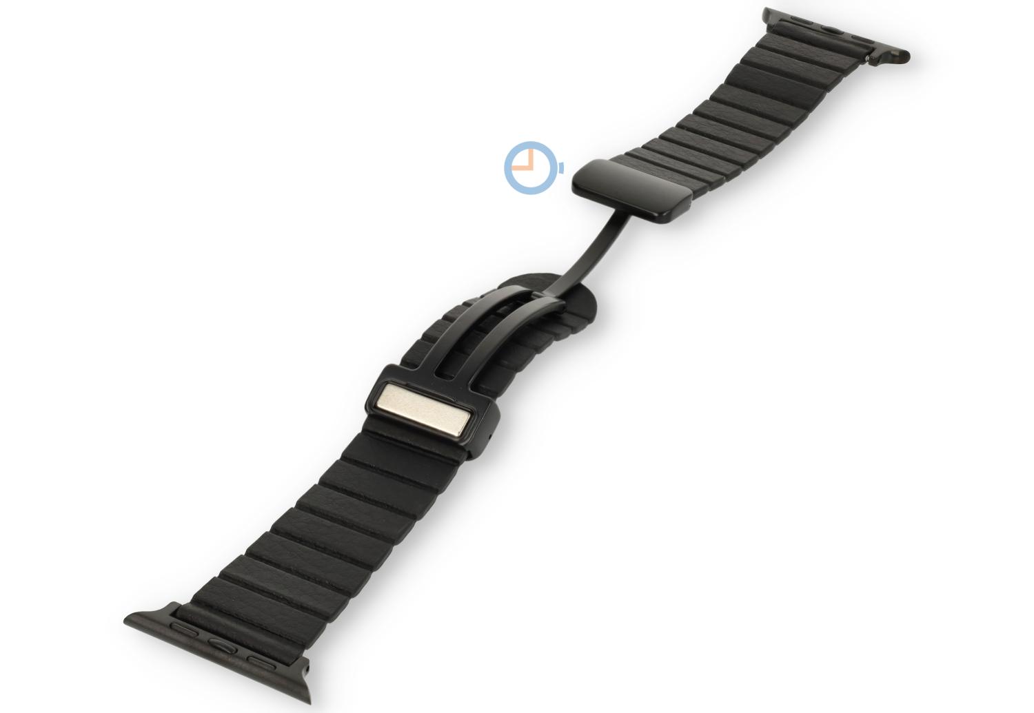 Leder Uhrenarmband mit Magnet-Schließe für Ihre Apple Watch 45mm - Farbe: Black. Bestellen Sie dieses Leder Apple Watch Uhrenarmband noch heute. Perfekt für alltägliche Aktivitäten, Geschäfts-Meetings oder Feierlichkeiten. Das Armband ist dünn, flexibel und einfach zu Tragen. Das hochwertige Leder verleiht eine verfeinerte Ausstrahlung Ihrer Apple Watch, wodurch es ein idealer Begleiter ist für jede Gelegenheit.