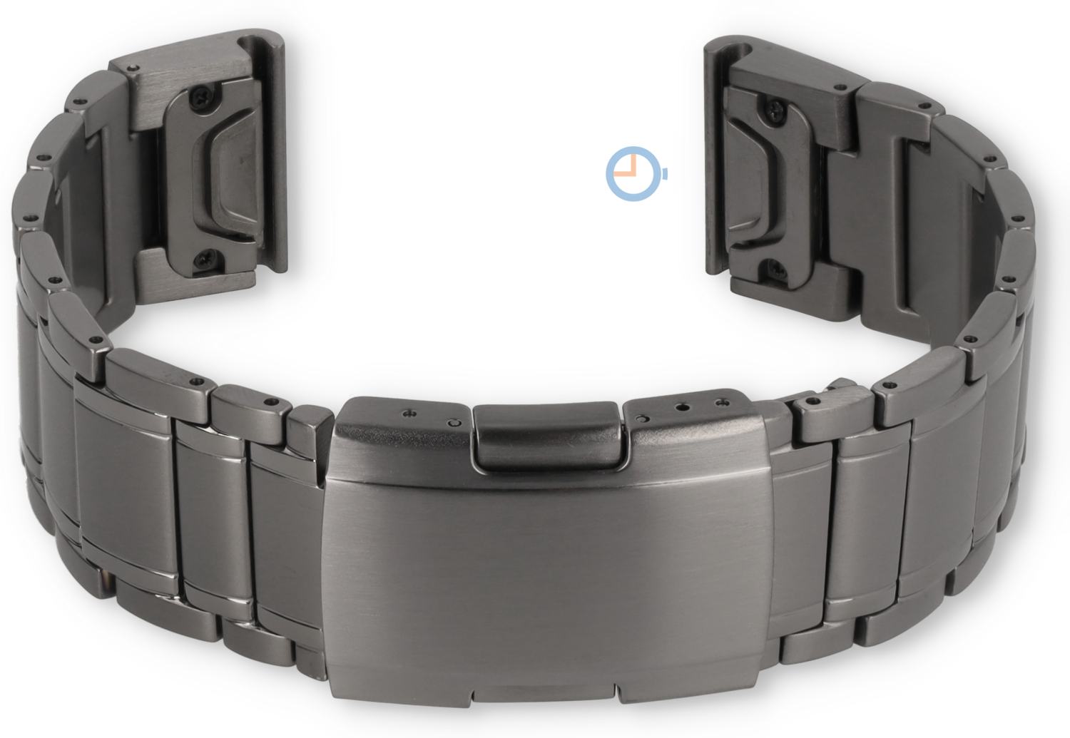 Das gegliederte Uhrenarmband hat eine maximale Länge von 200mm und kann auf 170mm gekürzt werden. Der Faltschluss ist mit Druckknöpfen versehen, um das sichereöffnen und Schließen zu gewährleisten. Die Adapter verfügen über das bekannte Quick-Fit-System, wie Sie es von Garmin selbst gewohnt sind. Schnell und einfach wechseln.