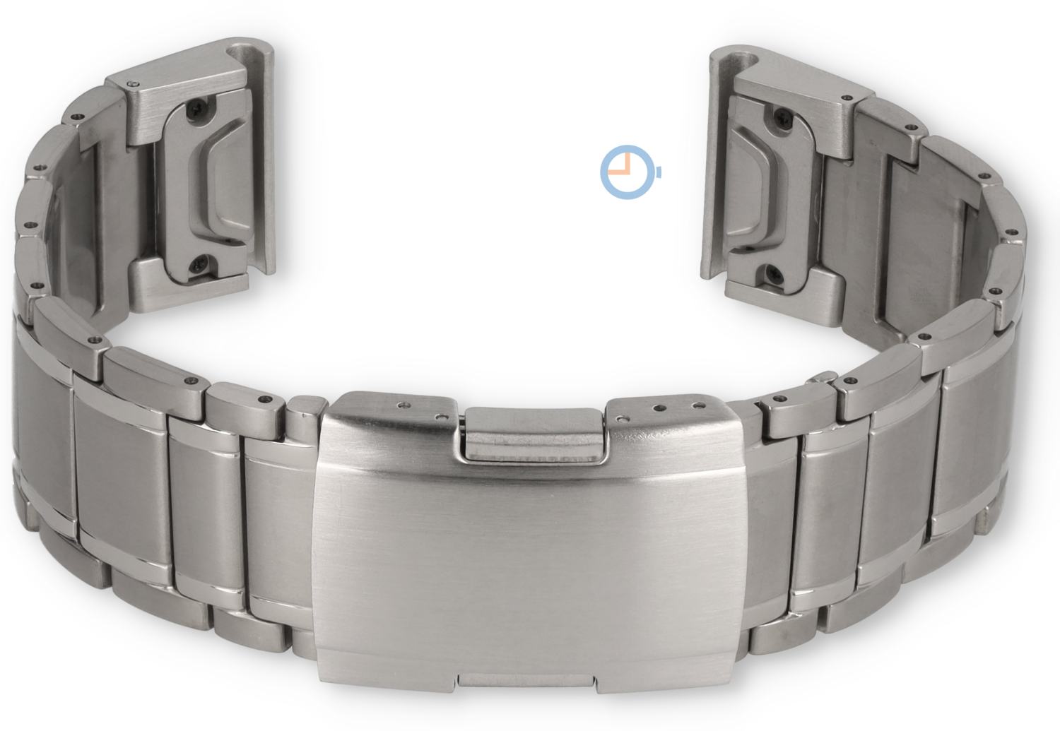 Das gegliederte Uhrenarmband hat eine maximale Länge von 200mm und kann auf 170mm gekürzt werden. Der Faltschluss ist mit Druckknöpfen versehen, um das sichereöffnen und Schließen zu gewährleisten. Die Adapter verfügen über das bekannte Quick-Fit-System, wie Sie es von Garmin selbst gewohnt sind. Schnell und einfach wechseln.