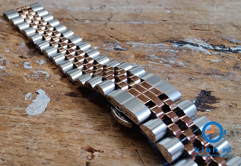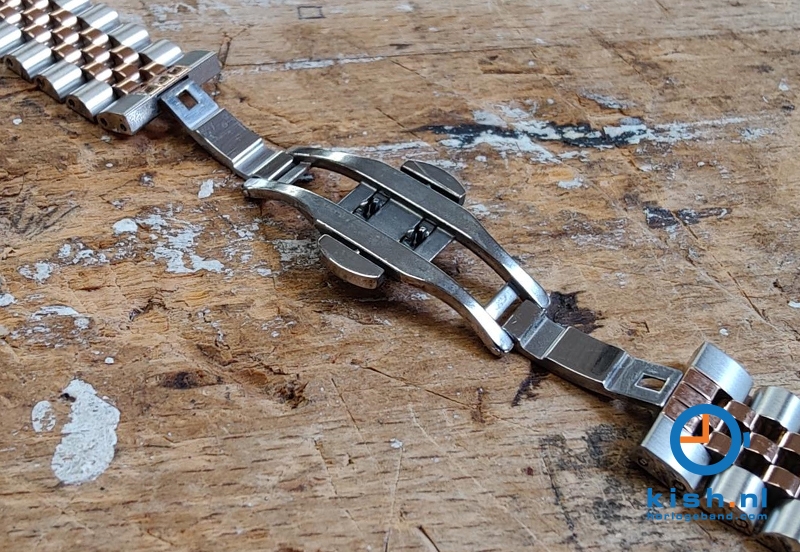 Dieses kultige Jubilee - Armband aus Stahl hat einen Rolex Oyster - Look, der mittlerweile auch bei vielen anderen Uhrenmarken zu finden ist! Sie können das Uhrenarmband mit verschiedenen Uhren kombinieren. Die Schmetterlingsschließe erleichtert das An - und Ablegen der Uhr. Die Schließe wird mit den beiden Drückern auf beiden Seiten geöffnet.