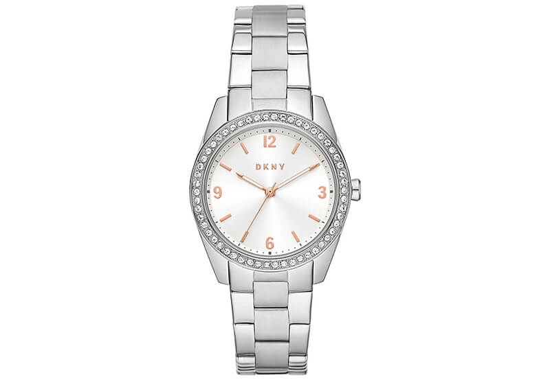 DKNY Uhrenarmband NY2901. Dieses Uhrenarmband stammt aus der NOLITA Kollektion. Schönes silbernes Edelstahl Uhrenarmband aus Gliedern. Die silberne Farbe sorgt für eine zeitlose und schicke Ausstrahlung.