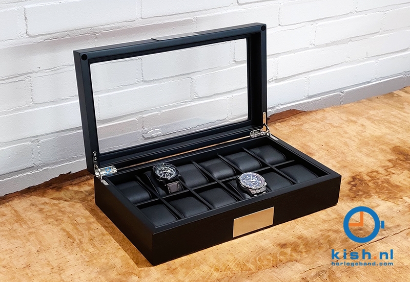 Diese schöne Uhrenbox sieht nicht nur toll aus, sondern du bewahrst deine Uhren sicher auf. Du kannst in dieser Uhrenbox bis zu 12 Uhren aufbewahren. Die Leder-Uhrenkissen sind herausnehmbar, dadurch kannst du die Uhren einfach herein legen.