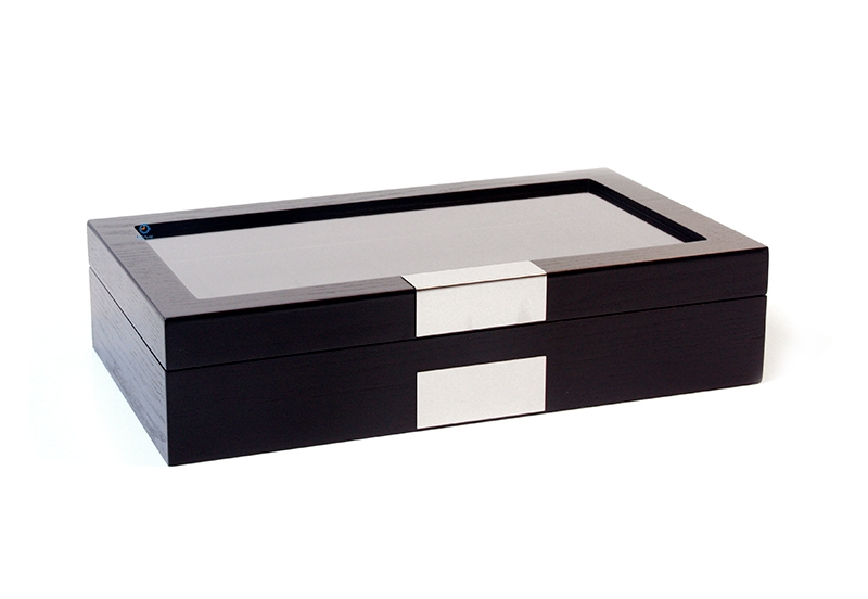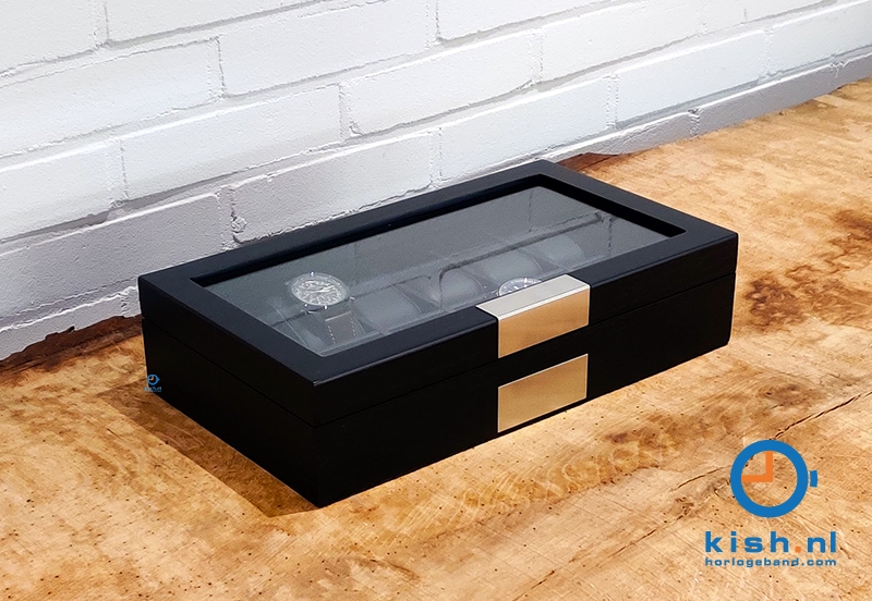 Dieses Holzkiste ist von innen schwarz, welches super harmoniert mit der designvollem Äußeren. Bewahre deine Uhren sicher auf in dieser stilvollen Box. Der matte Lack und die rostfreie Platte machen die Box komplett.