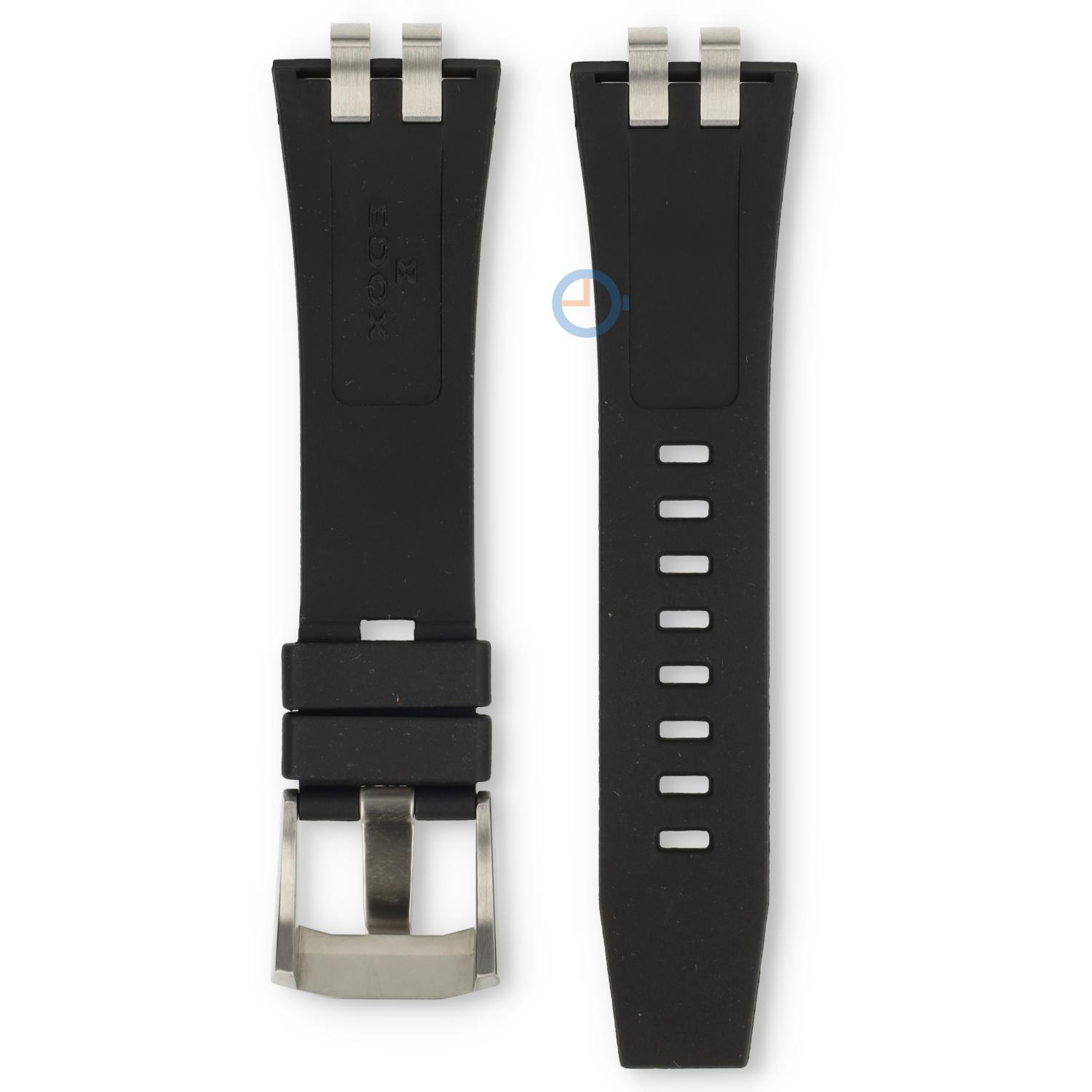 Originales Edox Delfin 88005 Uhrenarmband. Dieses Uhrenarmband hat einen speziellen Anstoß am Uhrengehäuse, wodurch es nur geeignet ist für die Edox Delfin Modelle. Das schwarze Kautschuk Uhrenarmband ist 22mm breit und wird mit Schrauben an Ihre Uhr befestigt. Dieses Armband wird exkl. Schließe geliefert.