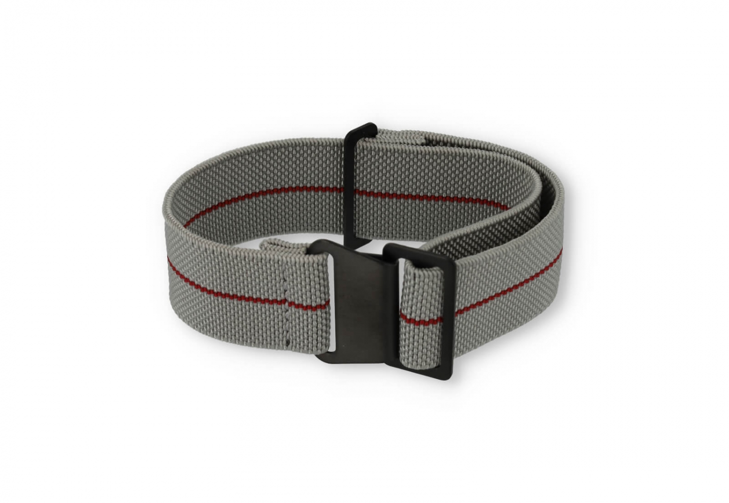 Elastistches Uhrenarmband für Uhren mit einem 20mm Anstoß. Dieses Nylon Uhrenarmband ist hergestellt aus Fallschirm Teilen und wurde getragen durch die Marine in den Jahren 60/70. Es kann dann auch nicht anders, dass dieses Uhrenarmband superstark ist. Sehr praktisch für Aktivitäten draußen. Durch dass das Nylon elastisch ist, umschließt es das Handgelenk perfekt. Außerdem ist es auch einfach zu schließen, durch die stabile schwarzen Hakenschließe.
