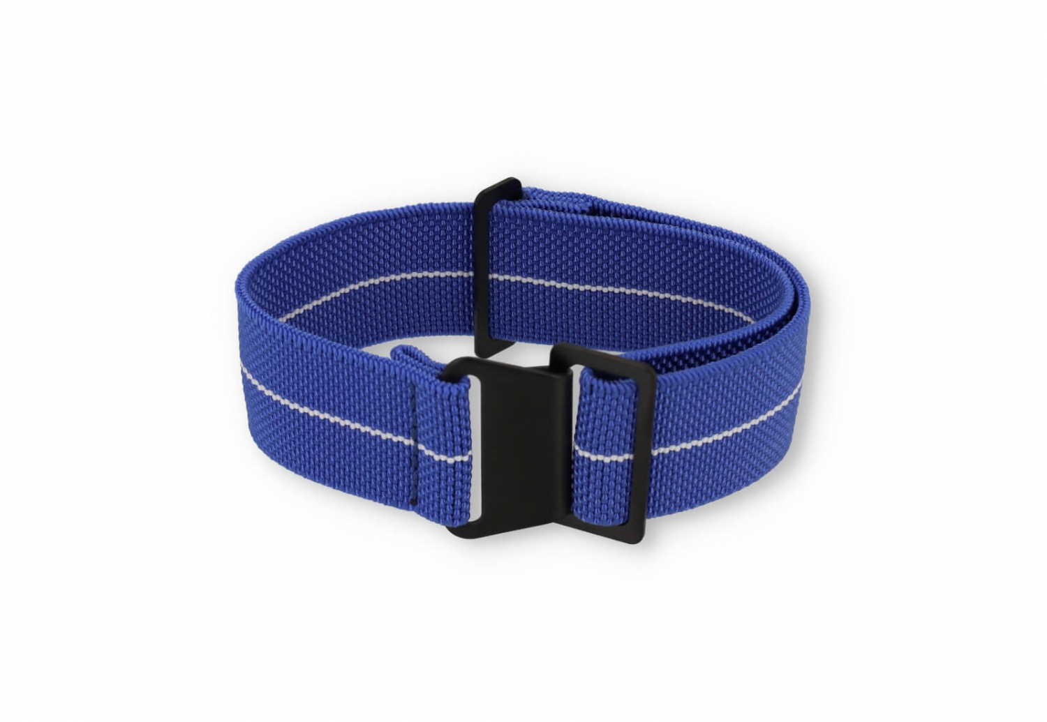 Elastistches Uhrenarmband für Uhren mit einem 20mm Anstoß. Dieses Nylon Uhrenarmband ist hergestellt aus Fallschirm Teilen und wurde getragen durch die Marine in den Jahren 60/70. Es kann dann auch nicht anders, dass dieses Uhrenarmband superstark ist. Sehr praktisch für Aktivitäten draußen. Durch dass das Nylon elastisch ist, umschließt es das Handgelenk perfekt. Außerdem ist es auch einfach zu schließen, durch die stabile schwarzen Hakenschließe.