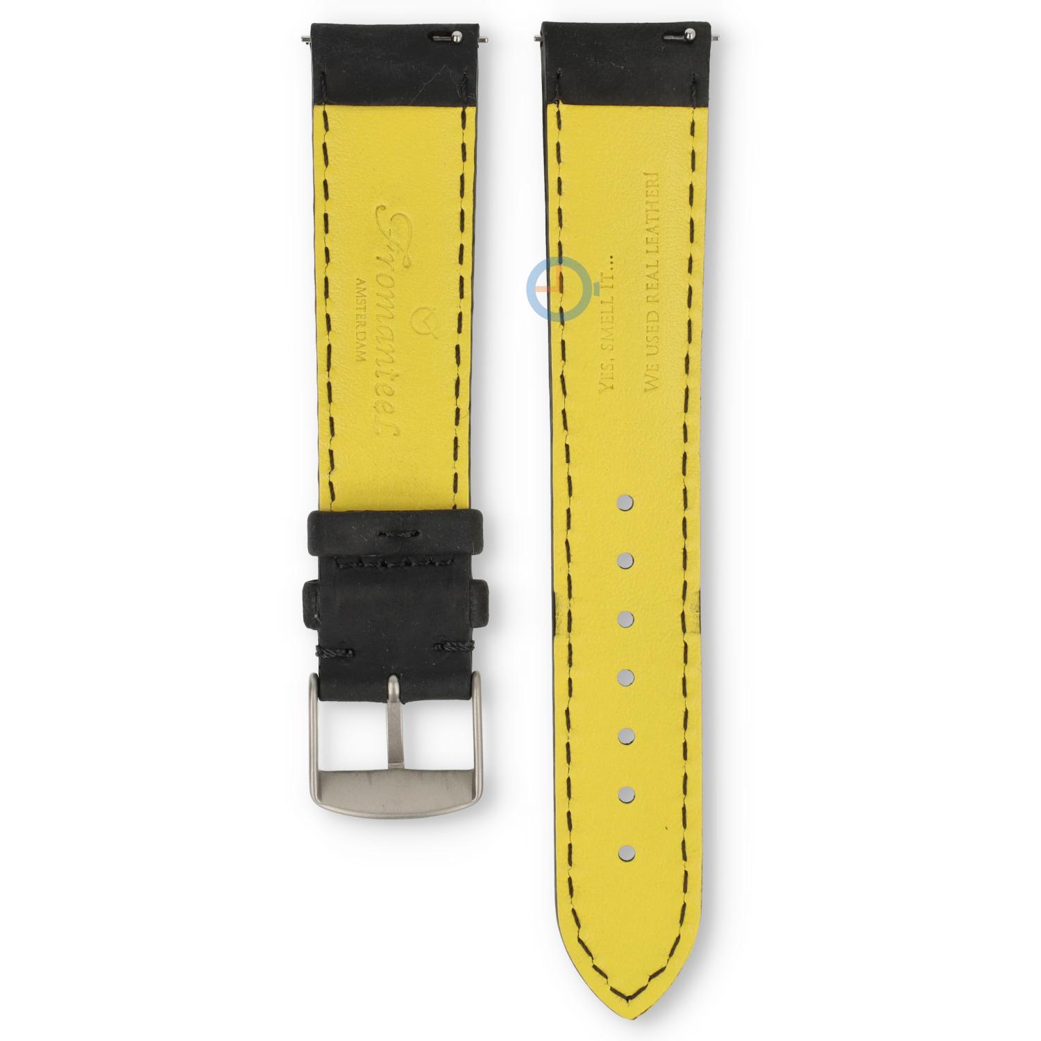 Fromanteel Vintage Black Strap Perforated 20mm breit schwarz Uhrenarmband mit Quick Switch - erneuern oder frischen Sie Ihre Uhr auf mit diesem Qualitäts-Uhrenarmband Fromanteel. Original und stilvoll. Das weiche Leder formt sich problemlos nach Ihrem Handgelenk, was sorgt für eine natürliche Passform.