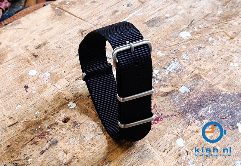 Originales Fromanteel Uhrenarmband schwarz. Dieses schwarze Nylon Uhrenarmband ist hergestellt aus sehr starkem gewebten Nylon. Dieses Uhrenarmband ist an einem Stück und hat eine Slide - in Befestigung. Schieben Sie das Uhrenarmband durch die Federstegen, die an dem Uhrengehäuse befestigt sind. Ziehen Sie es danach nochmal durch das übergebliebe Stück. Dies vermeidet das die Uhr vom Uhrenarmband rutschen kann.