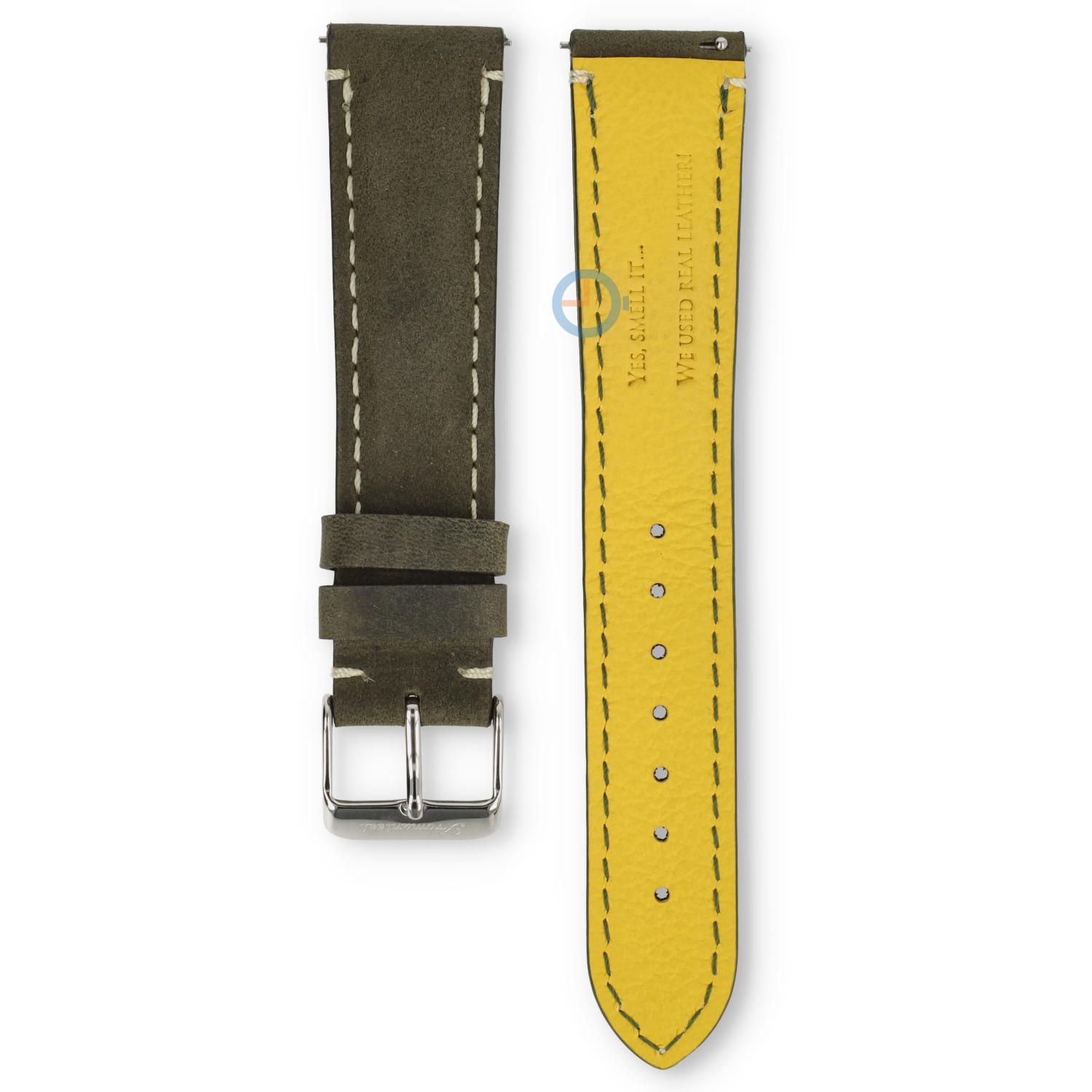 Fromanteel vintage moss green strap 20mm breit Moosgrün Uhrenarmband mit Quick Switch - erneuern oder frischen Sie Ihre Uhr auf mit diesem Qualitäts-Uhrenarmband Fromanteel. Original und stilvoll. Das weiche Leder formt sich problemlos nach Ihrem Handgelenk, was sorgt für eine natürliche Passform.