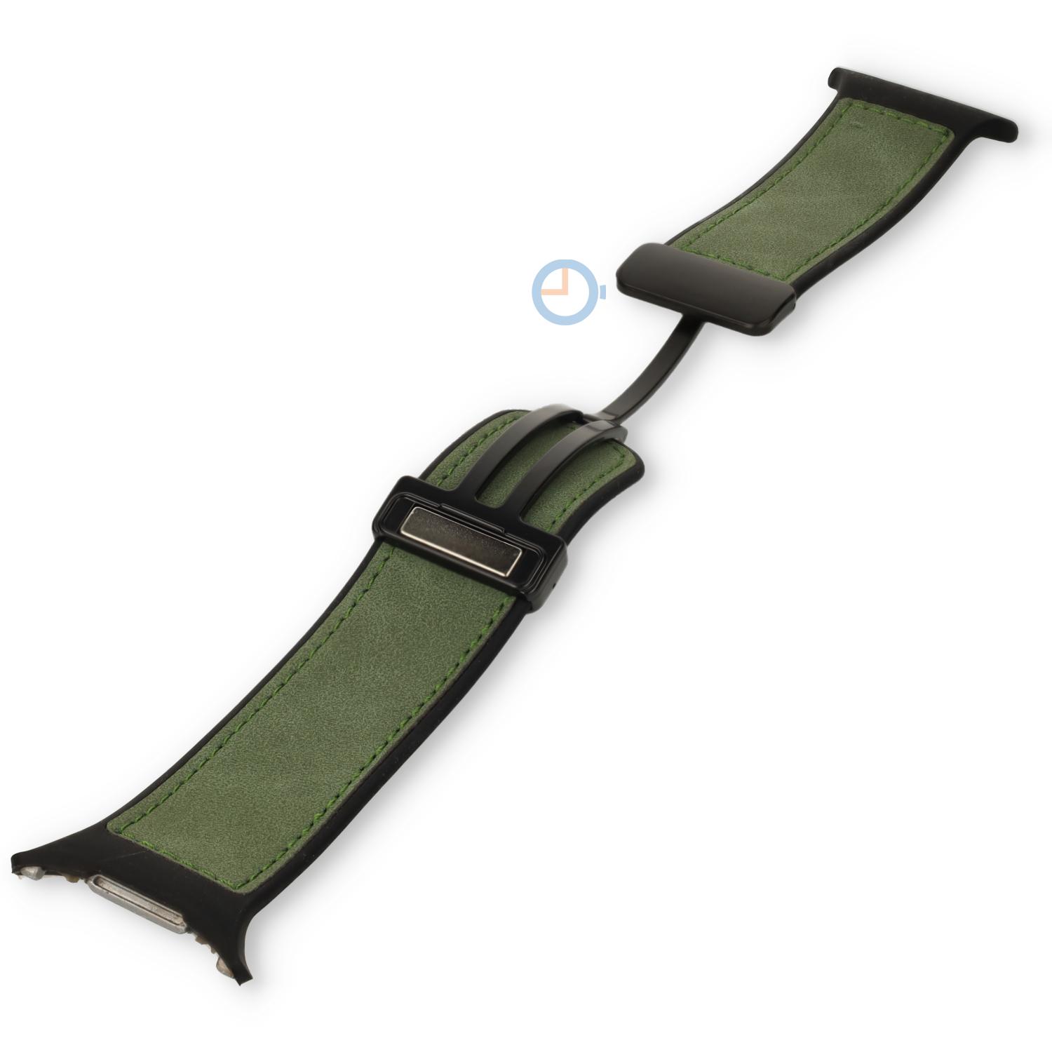 Stylisches Hybrid-Leder/Silikon-Band für Galaxy watch Ultra schwarz mit grün