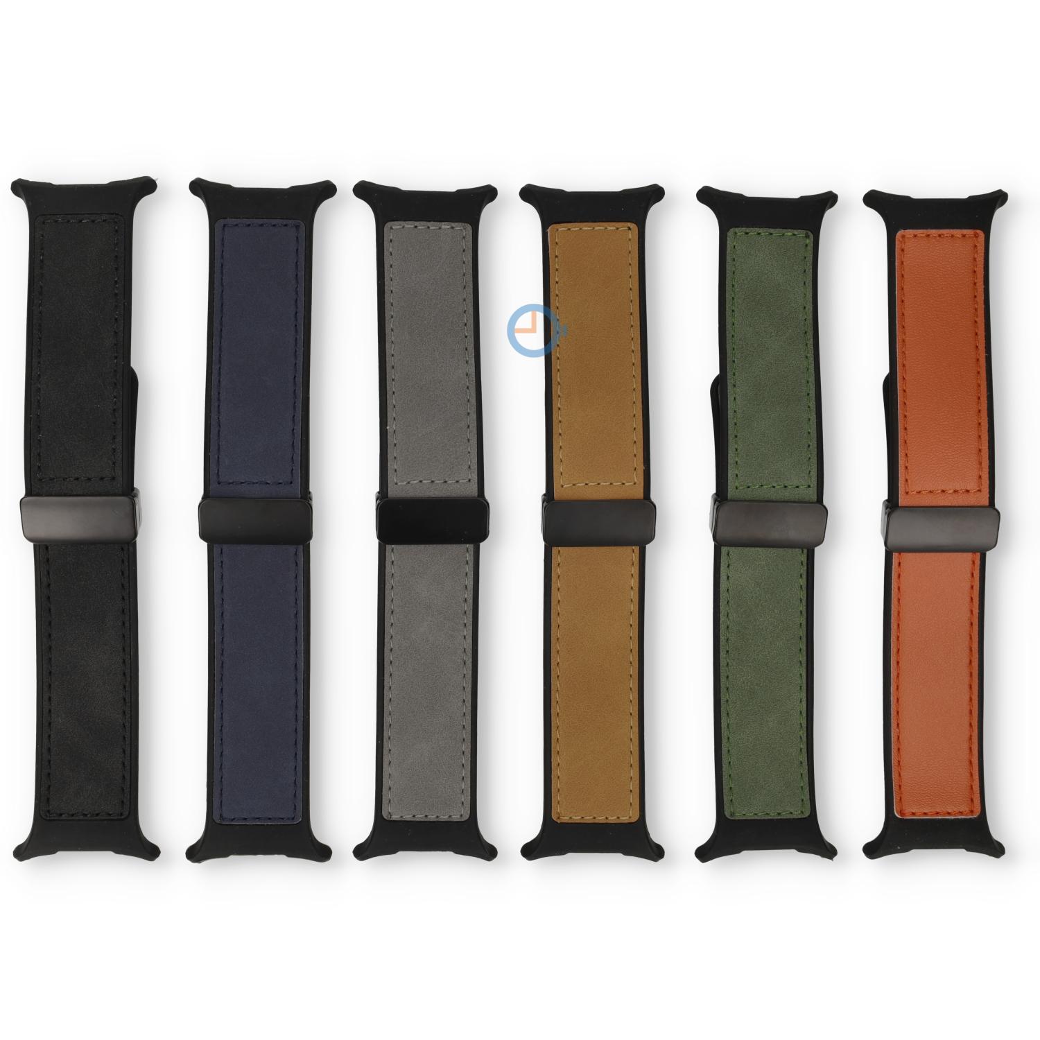 Das Leder an der Oberseite verleiht dem Band einen stilvollen, luxuriösen Look, während die Silikonunterlage Flexibilität und langanhaltenden Tragekomfort bietet. Diese einzigartige Kombination aus Materialien macht das Band perfekt für sowohl formelle Anlässe als auch aktive Tage.