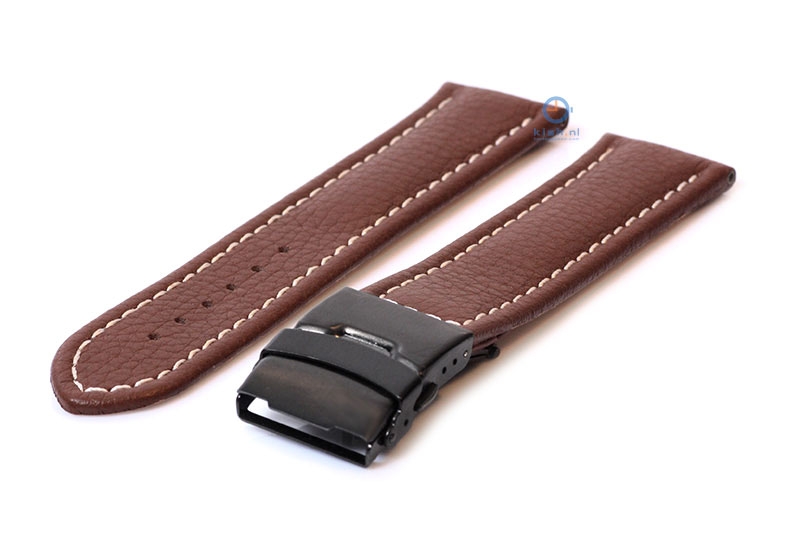 Gisoni Uhrenarmband 20mm braun Leder mit schwarze Faltschließe. Das Armband wird mit Federstegen befestigt. Diese können Sie einfach selbst an der Uhr montieren. Mit einem Werkzeug zum Entfernen der Federstege ist der Austausch des Uhrenarmbandes viel einfacher.