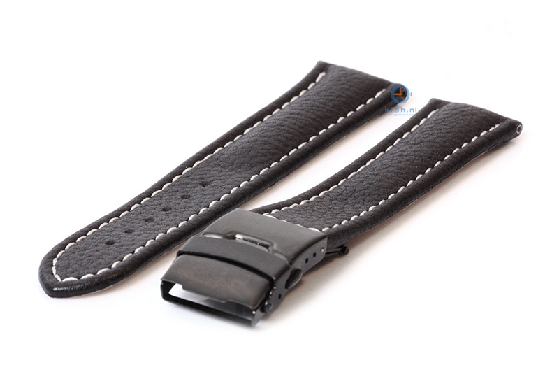Gisoni Uhrenarmband 24mm schwarz Leder mit schwarze Faltschließe. Das Armband wird mit Federstegen befestigt. Diese können Sie einfach selbst an der Uhr montieren. Mit einem Werkzeug zum Entfernen der Federstege ist der Austausch des Uhrenarmbandes viel einfacher.