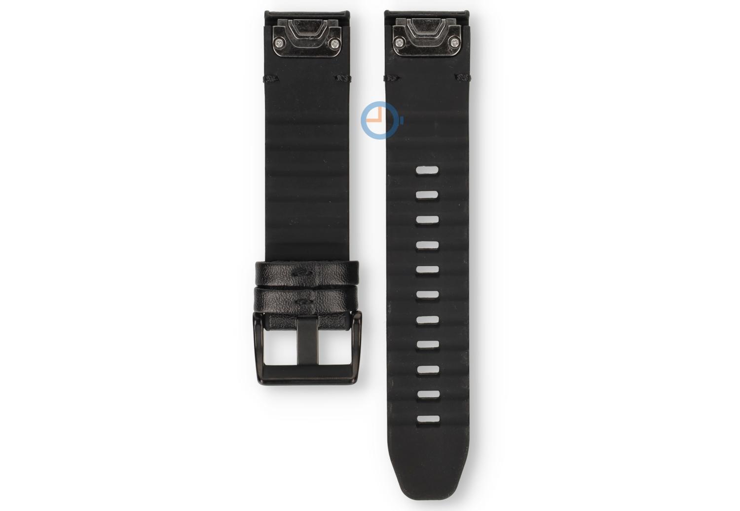 Hybrid Silikon Uhrenarmband mit Leder Beschichtung: Verleihen Sie Ihre Uhr einen stilvollen Upgrade mit diesem Hybrid Band aus Silikon und Leder. Mit einer Breite von 26 mm kombiniert dieses Band die Felxibilität von Silikon mit einer Beschichtung aus schwarzem Leder für eine elegante Ausstrahlung. Es bietet einer komfortabelen Passform für den täglichen Nutzen und ist nachhaltig genug für sportliche Aktivtäten.