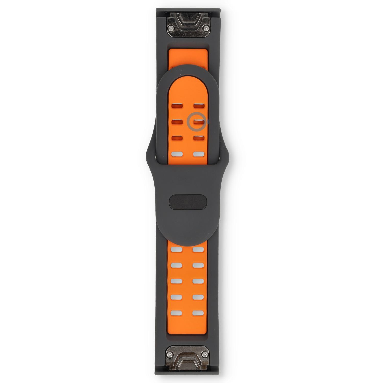 Luftdurchlässiges Uhrenarmband aus Silikon - 26mm - grey/orange