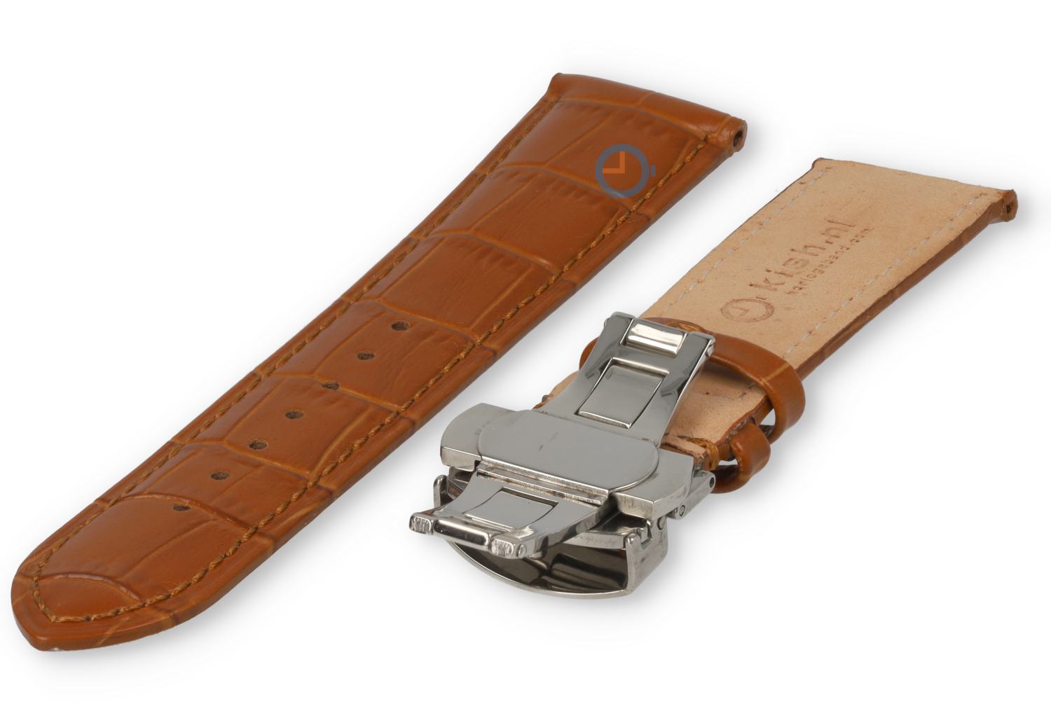 Luxe horlogeband met vlindersluiting speciaal ontwikkeld voor Tissot - 22mm leer met crocoprint - kleur: lichtbruin. Het leer en de stiksels zijn effen gekleurd voor die echte Tissot look. Deze crocoleren band is 22mm breed en heeft een rechte, universele aanzet. Je plaatst dit horlogebandje met pushpinnen eenvoudig zelf aan je horloge. De sluiting is een betrouwbare, luxe vlindersluiting om perfect te matchen bij jouw Tissot horloge, maar wil je je originele sluiting behouden? Dan kun je je originele sluiting overzetten. Deze is namelijk ook bevestigd met een pushpin.