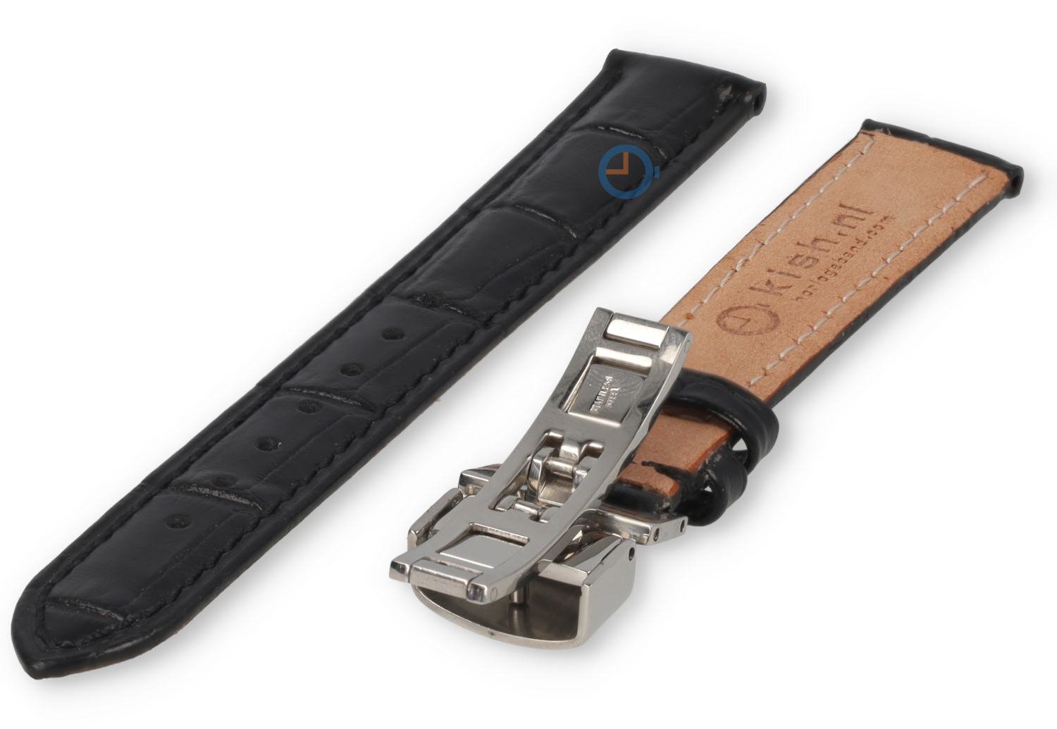 Luxe horlogeband met vlindersluiting speciaal ontwikkeld voor Tissot - 16mm leer met crocoprint - kleur: zwart. Het leer en de stiksels zijn effen gekleurd voor die echte Tissot look. Deze crocoleren band is 16mm breed en heeft een rechte, universele aanzet. Je plaatst dit horlogebandje met pushpinnen eenvoudig zelf aan je horloge. De sluiting is een betrouwbare, luxe vlindersluiting om perfect te matchen bij jouw Tissot horloge, maar wil je je originele sluiting behouden? Dan kun je je originele sluiting overzetten. Deze is namelijk ook bevestigd met een pushpin.