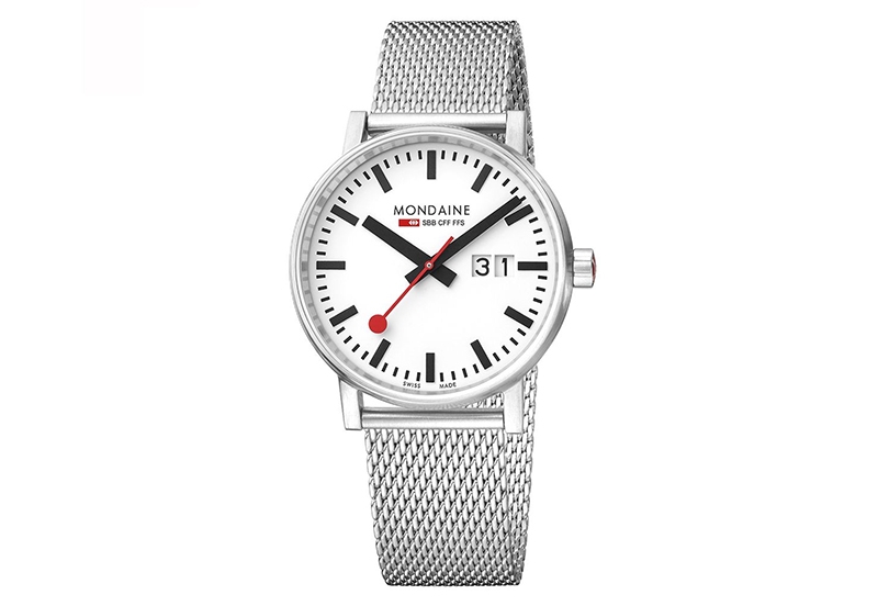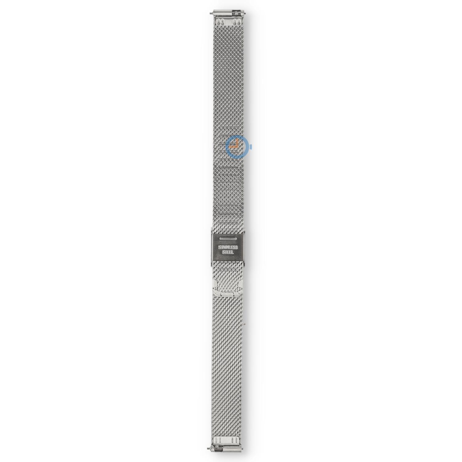 Mondaine Uhrenarmband aus Stahl. Ein sehr zeitloses und starkes Material. Da es ein sehr schmales Band ist, wirkt es nicht zu klobig und passt es einfach zum Design.