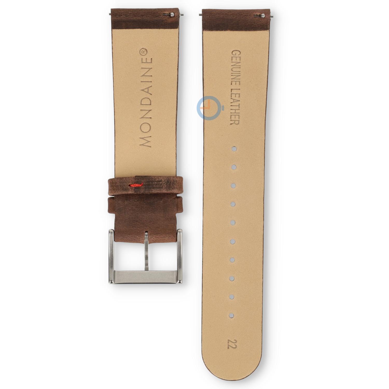 Uhrenarmband von Mondaine in Leder. Armbänder aus Leder sind sehr nachhaltig und stark. Das Leder verleiht dem Armband eine schicke und zeitlose Ausstrahlung. Dieses Armband wird mit einer Schnalle geschlossen. Sie befestigen das Armband ganz einfach dem dem Quick Switch System an Ihrer Uhr.