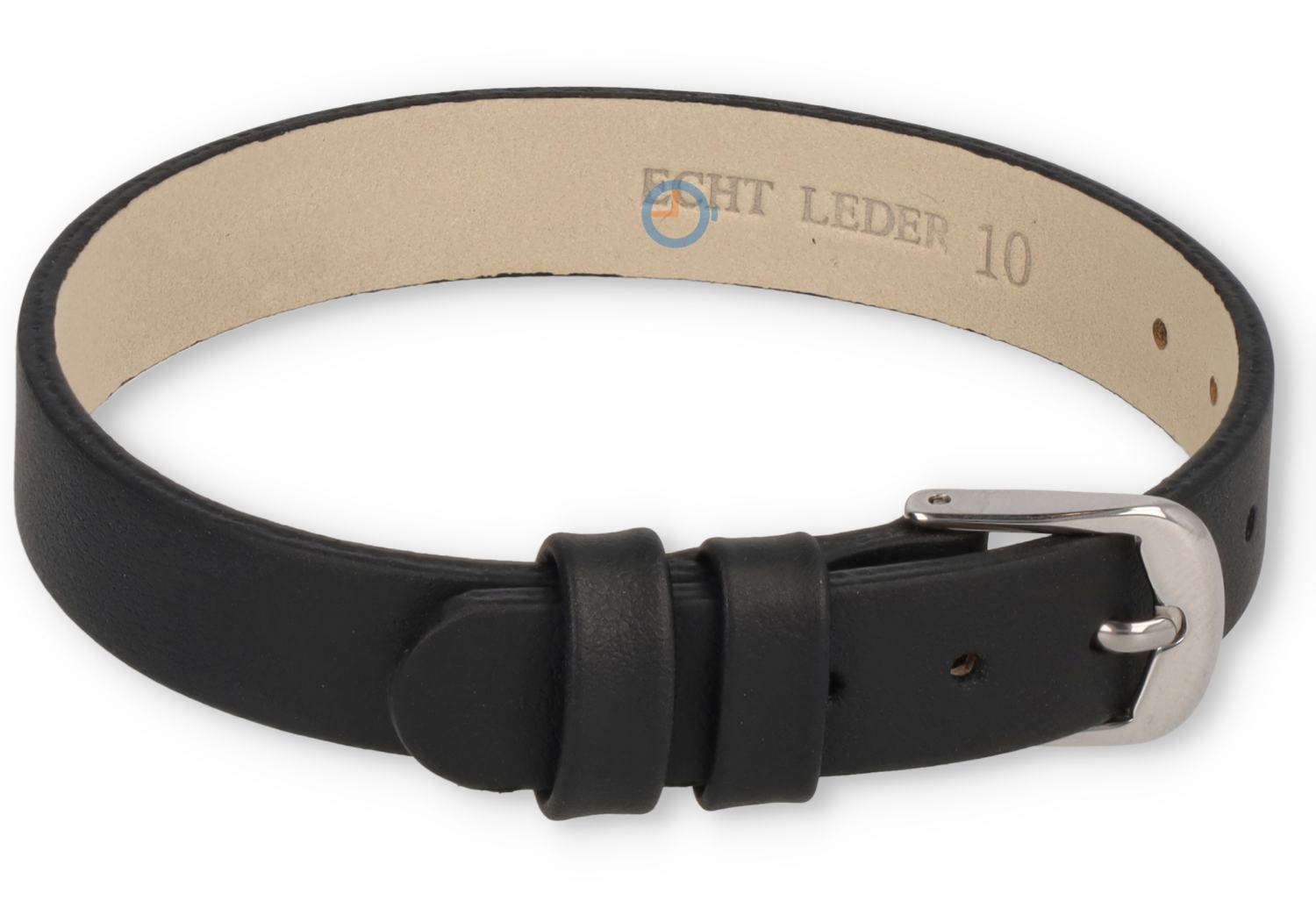 One-piece Leder Uhrenarmband - 10mm - schwarz