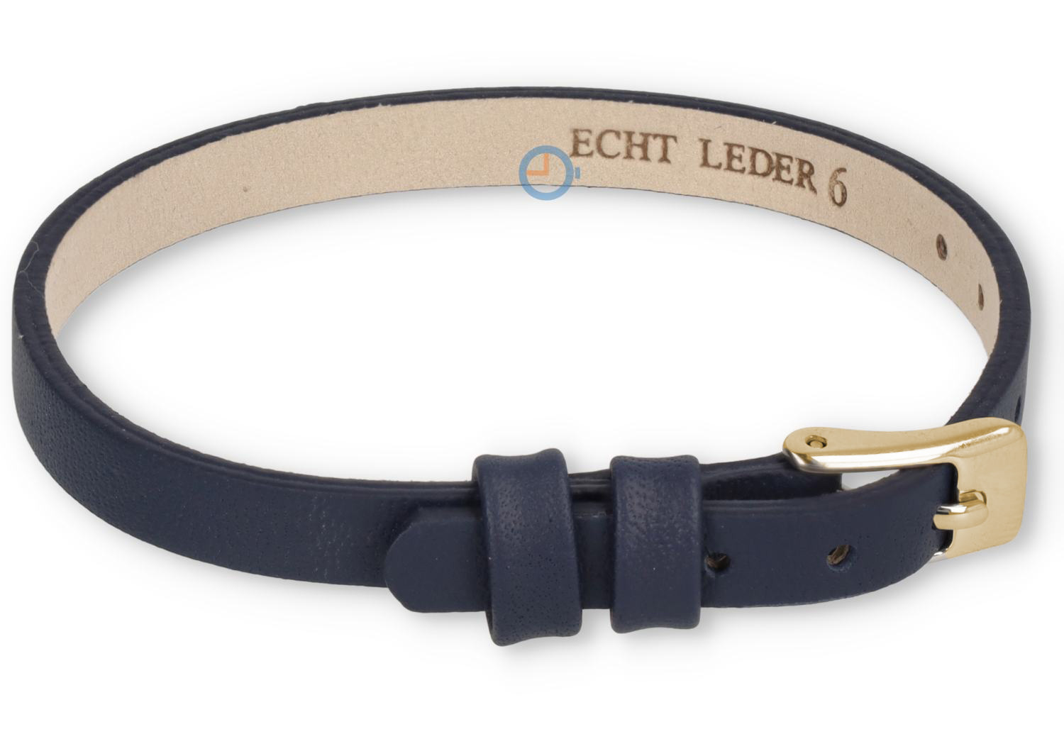 One-piece Leder Uhrenarmband - 6mm - dunkelblau mit gold