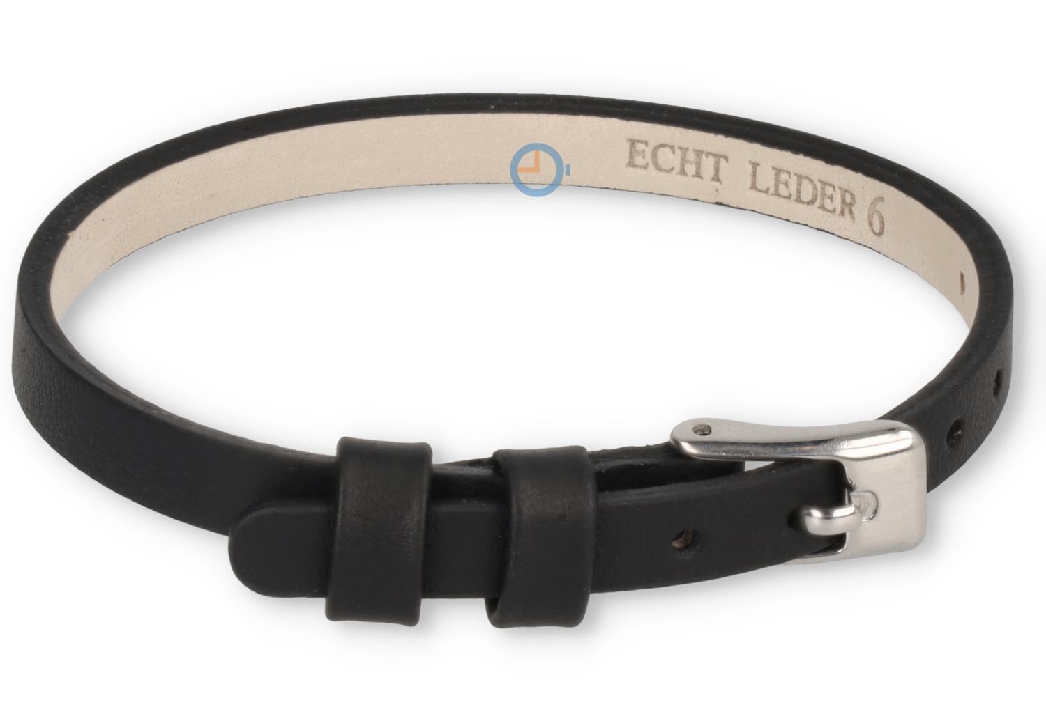 One-piece Leder Uhrenarmband - 6mm - schwarz