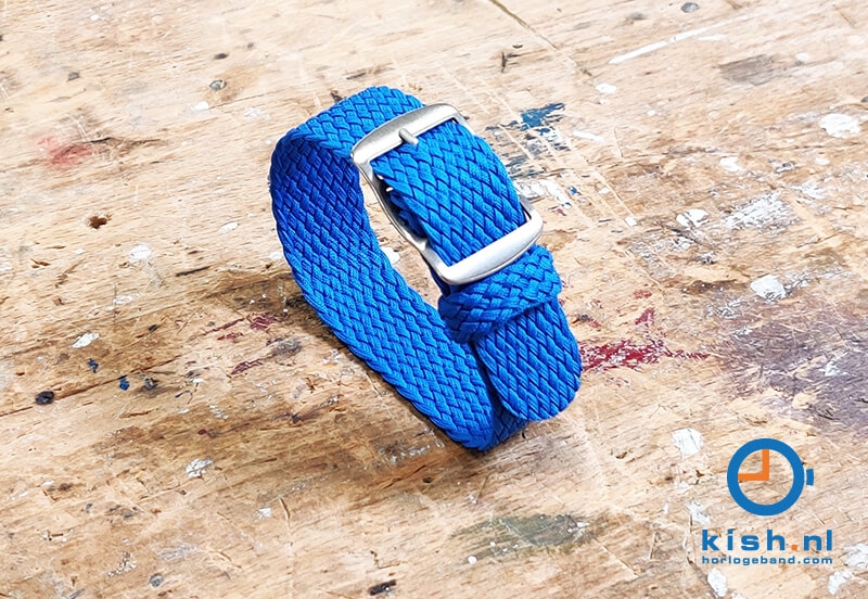 Perlon ist eine super starke Kunststofffaser, die verwant ist mit Nylon. Dieses Material wird u.a. verarbeitet in Fallschirmen und in Seilen der Luftwaffe und Marine. Das geflochtene Uhrenarmband kann einige Stöße ab und ist wasserfest. Die Ränder von dem Uhrenarmband wurden mit einem Laser bearbeitet, dadurch fransen die Ränder vom Armband nicht aus.